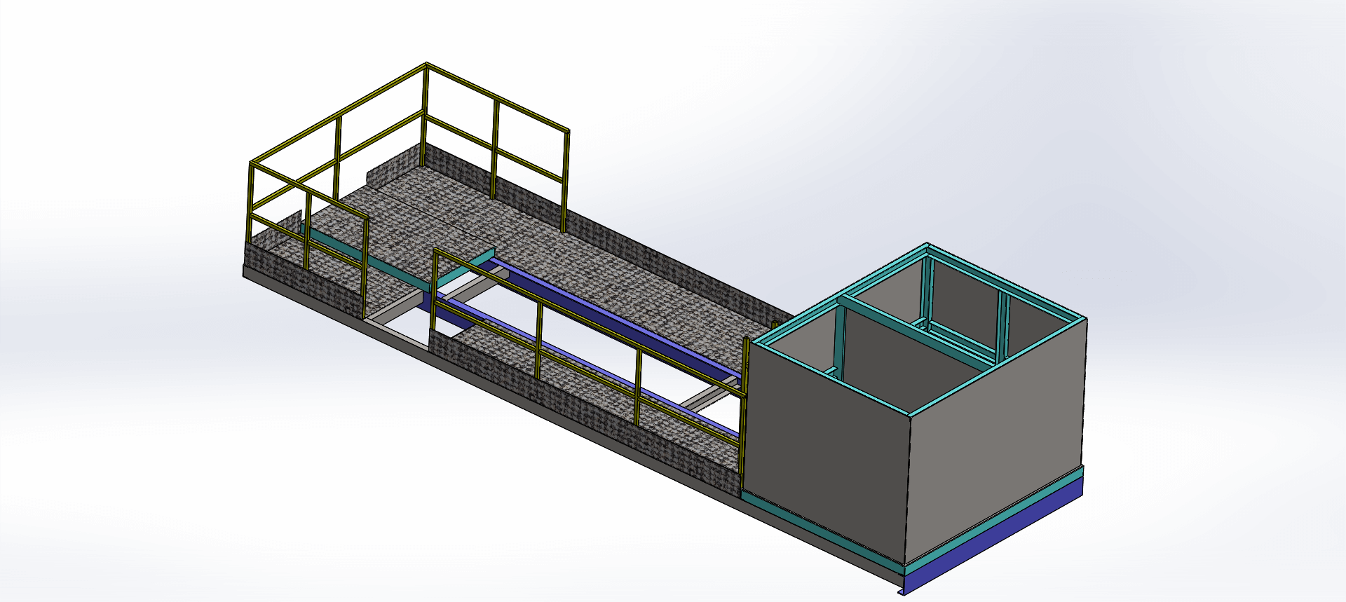 All steel welded construction. 2 nos Main longitudinal members are high strength, lighter weight, Parallel flange beam of IS2062 (or) Equivalent grade steel running along full length of the trailer. Cross members – Rolled or Folded of material IS-2062/ST-52 are positioned at suitable locations. Various height side panel should be provided. 4 mm chequered sheet shall be provided all over platform.